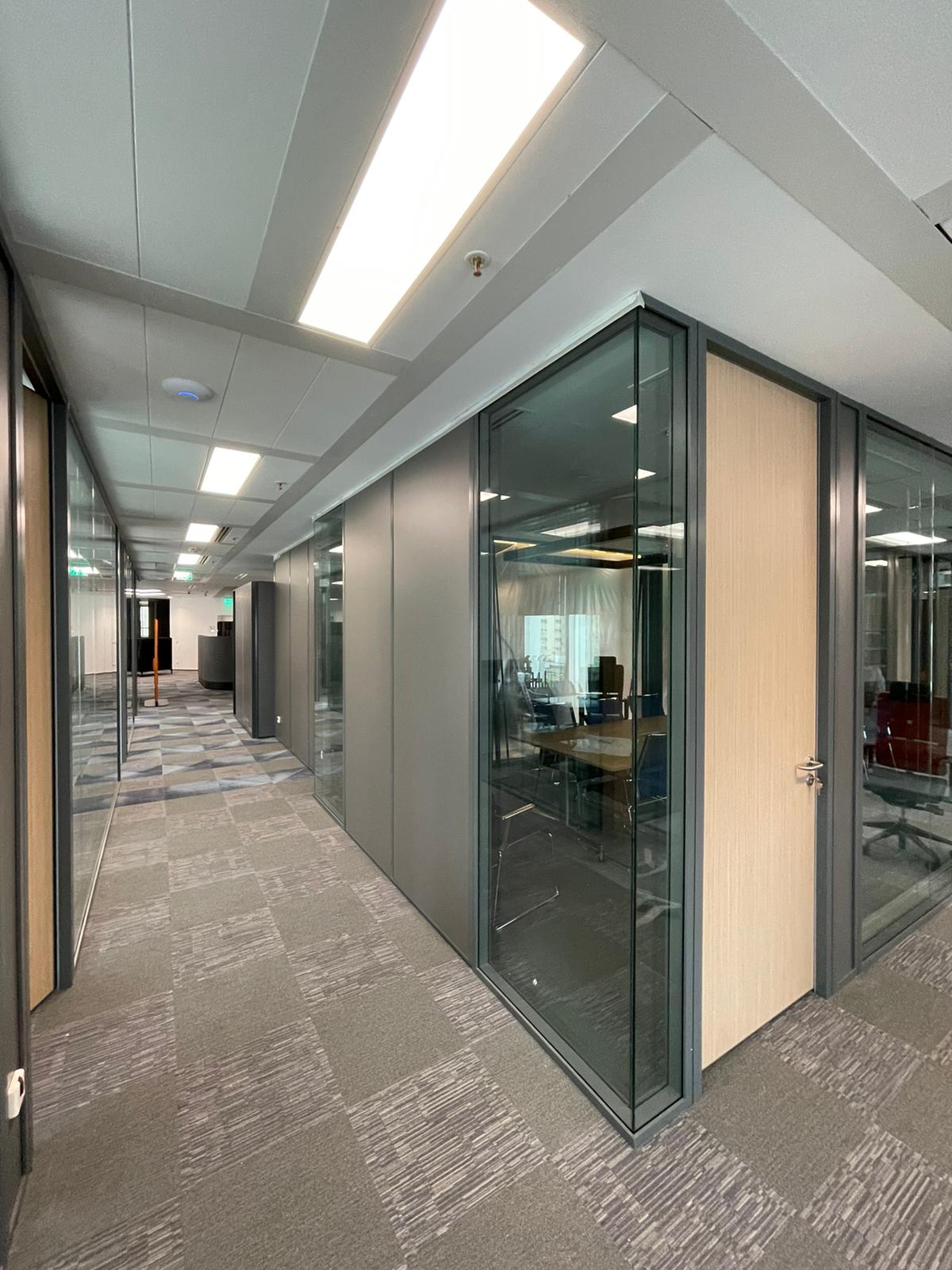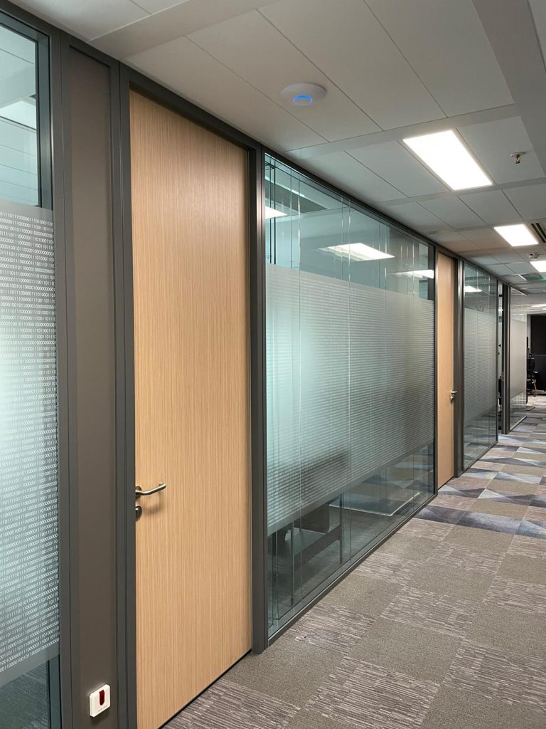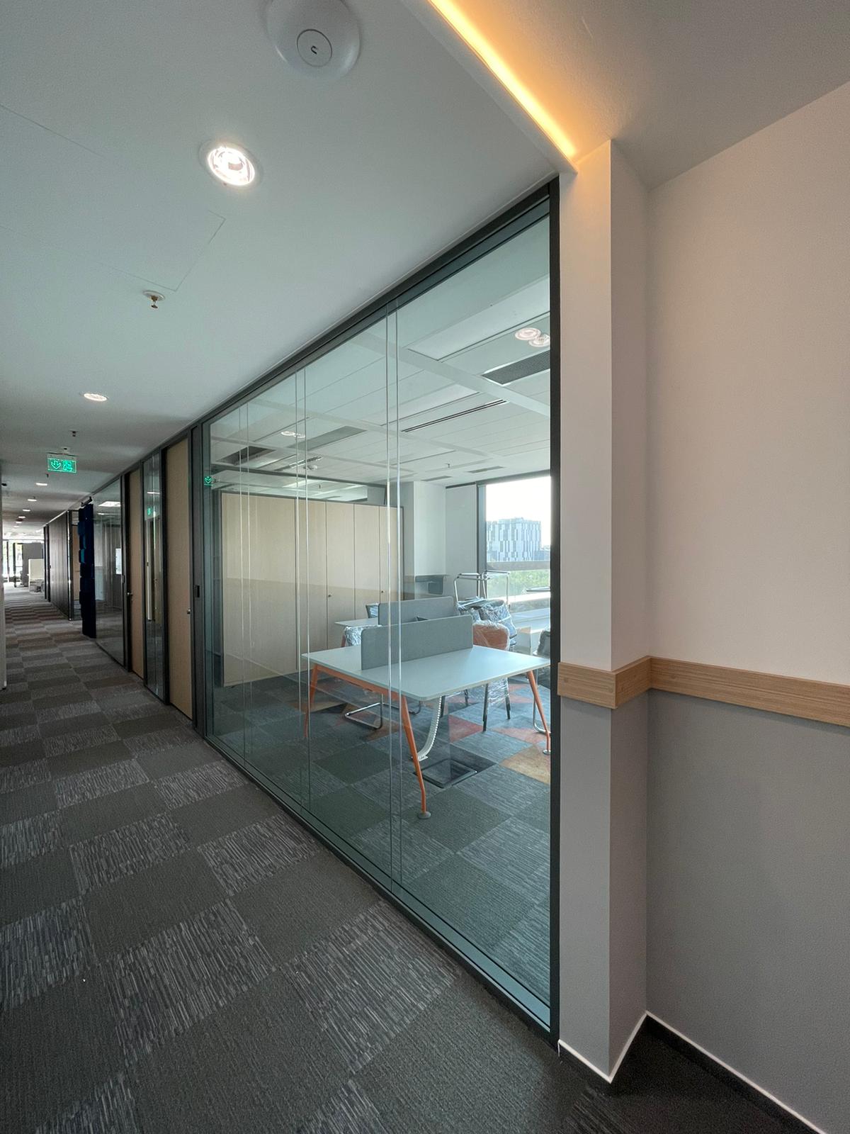 Firma noastra va propune sistemul OMEGA 100 Single Glass pentru o realizare clasica a unei partitii interioare cu un design placut si eficient, folosind pereti relocabili Interfinish cu o singura foaie de sticla.